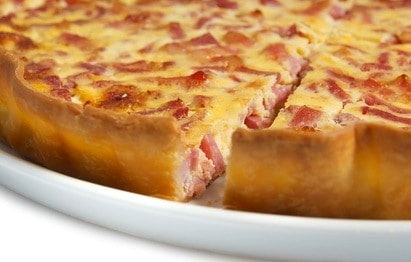 La ricetta classica della quiche lorraine si prepara con una base di pasta brisée e prevede una farcitura a base di uova, dadini di pancetta e panna. Vi proponiamo la versione probabilmenet più usata, vale a dire con l’aggiunta di formaggio emmental grattuggiato, ovviamente facoltativo, ma che a me piace molto.