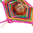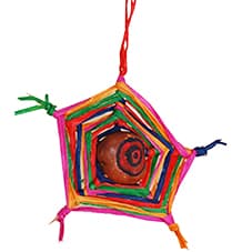 - Per finire, annodare gli ultimi fili che sporgono intorno alle estremità degli stuzzicadenti. Tagliare i pezzi di rafia in eccedenza, eccetto quello che servirà per appendere il nostro acchiappasogni.