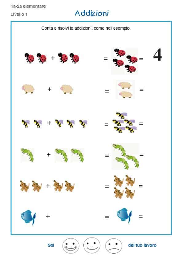 - Chiedete al bambino di valutare il proprio lavoro e di colorare la faccina che corrisponde al suo grado di soddisfazione.