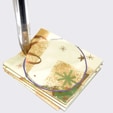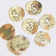 - Ritagliare una striscia di carta colorata (o da regalo) più larga della base del cerchio ritagliato. Piegare la striscia di carta a fisarmonica. Mettere il cerchio ritagliato sopra alla carta e tracciarne il contorno. Ritagliare 24 cerchi di carta. Numerarli da 1 a 24.