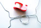 - Legare i due anelli delle grucce assieme con del nastro adesivo telato o del cerotto telato, ricoprendoli completamente.