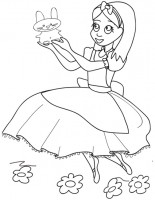 Alice nel Paese delle Meraviglie: disegno da colorare Disegno da stampare di Alice nel Paese delle Meraviglie che si è seduta a riposare e gioca con un tenero coniglietto. Cliccare sul disegno per stamparlo: