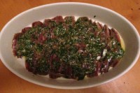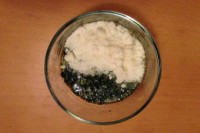 - In una ciotola, mischiate il trito di aglio e prezzemolo con pecorino, olio extravergine d’oliva e sale, amalgamando il composto fino a renderlo omogeneo. Attenzione a non esagerare con il sale, il pecorino è salato!
