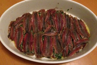 - 500 gr di alici (acciughe) fresche, pulite da viscere e teste.