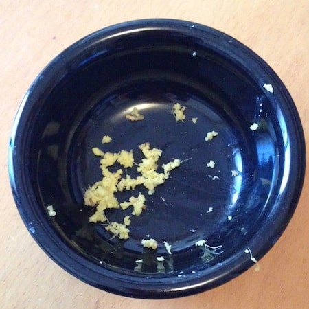 • Grattuggiate lo zenzero. In un’altra ciotola, mescolate il succo di limone con dell’olio, un pizzico di sale (facoltativo) e una macinata di pepe. Emulsionate e aggiungete il preparato allo zenzero. Mescolate.