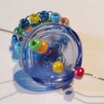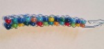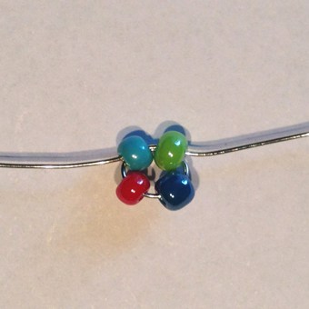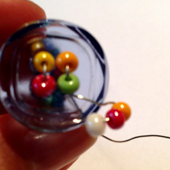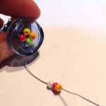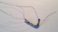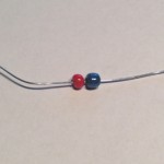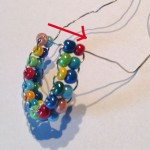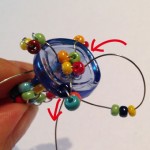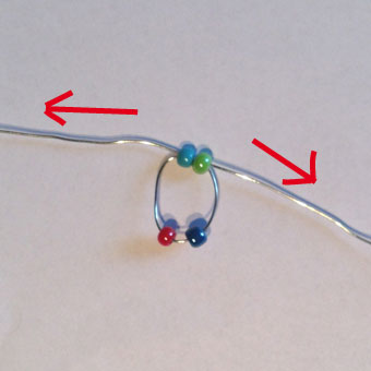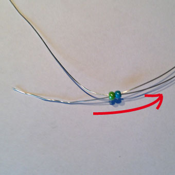 - Infilare 2 perle su una delle estremità del filo e infilare l’altra estremità del filo in queste 2 perle, in senso opposto.