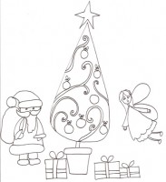 Angelo davanti all’albero di Natale da colorare Disegno di un meraviglioso angelo di Natale con Babbo Natale, da stampare e colorare gratuitamente. Cliccare sul disegno per stamparlo:
