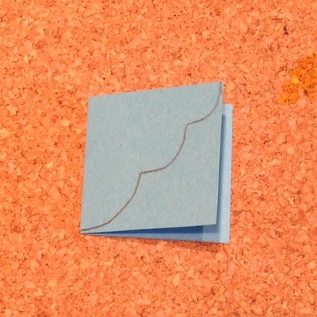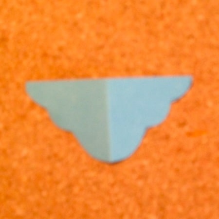 - Prendere un foglio di carta azzurro piĂą scuro e disegnare un rettangolo di circa 6 cm x 3 cm. Ritagliarlo.