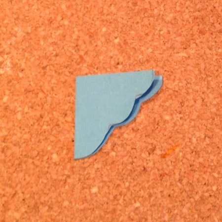 - Ritagliare la sagoma e, con la matita, riportarla su un pezzo di foglio azzurro chiaro. Ritagliare la sagoma azzurra.