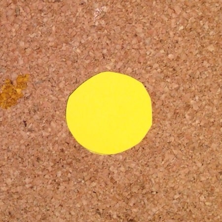 - Disegnare un cerchio di circa 3 cm di diametro sul foglio giallo e ritagliarlo. Se il bambino è abbastanza grande, cercate di fargli usare il compasso. Per i bambini più piccoli, cercate un oggetto tondo e aiutatelo a riportarne il contorno sul foglio.