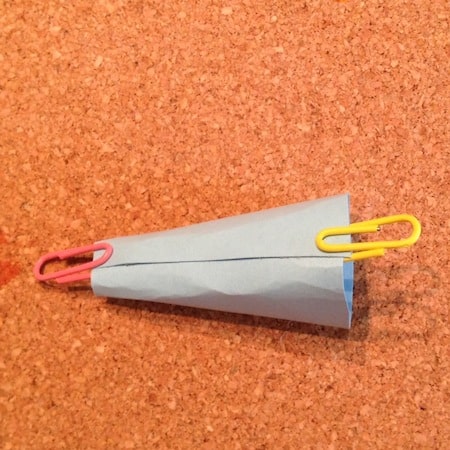 - Formare un cono ed incollarlo. Lasciarlo asciugare fino a quando non sarĂ perfettamente chiuso (aiutatevi con delle graffette).