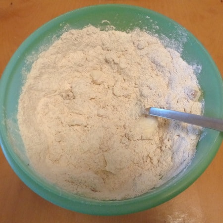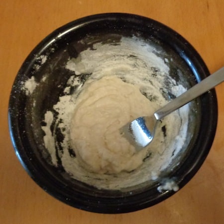 - Mischiare la farina, lo zucchero a velo, il sale e 250 g di burro tagliato a pezzetti. Aggiungere l’acqua e l’aceto ed impastare fino ad ottenere un impasto liscio e omogeneo.