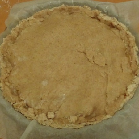- Nel frattempo, stendere l’altra metà dell’impasto, formando un secondo disco di pasta, più o meno della stessa misura del primo.