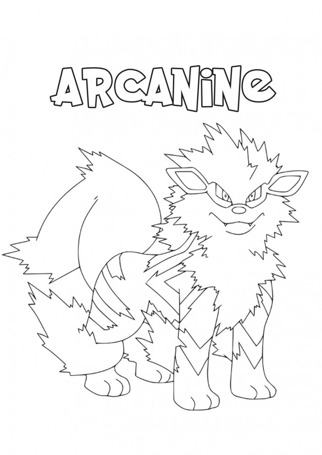 Un disegno di Arcanine, un Pokémon di tipo Fuoco della Prima generazione. Il suo numero identificativo è 59. Arcanine può sputare grosse lingue di fuoco, così come può correre con estrema velocità. Come altri Pokémon di tipo Fuoco, Arcanine ha una fiamma (o forse una sacca di fiamma) all’interno del proprio corpo.