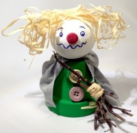 - Costruire una piccola scopa unendo qualche rametto. Legarli con un pezzo di rafia. Incollare la scopa.