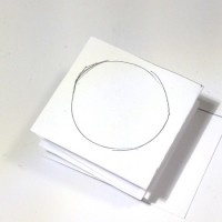 - Disegnare un cerchio di circa 3 cm di diametro sul quadrato superiore e ritagliare. Abbiamo 7 cerchi di carta bianca. Ripetere l’operazione sulle altre strisce. Dobbiamo ottenere 24 tondi bianchi;