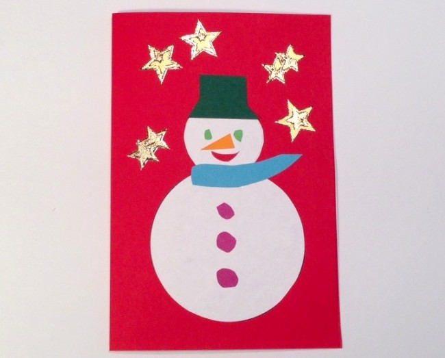 - Disegnare altri particolari su ritagli di carte colorate, particolari come occhi, bocca, sciarpa, bottoni, scopa… Ritagliarli e incollarli sul pupazzo di neve.