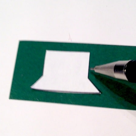 - Ritagliare le sagome e riportare la sagoma del cappello su un ritaglio di carta colorata. Ritagliarlo.
