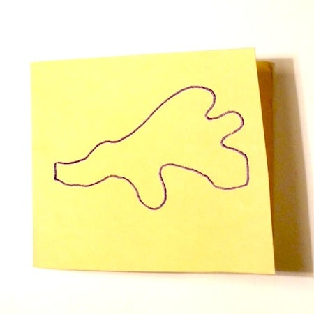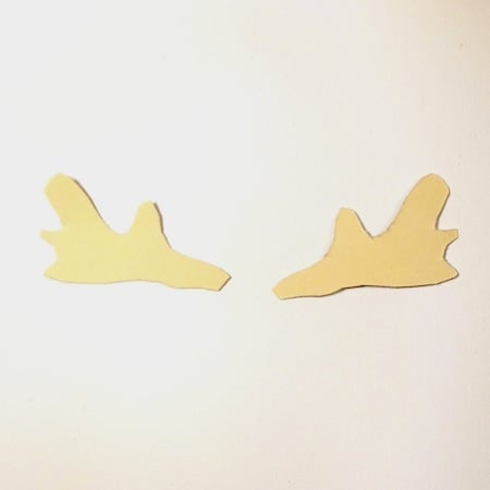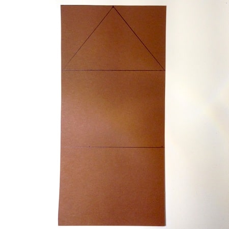 - Segnare il punto al centro del lato superiore del rettangolo e disegnare un triangolo, come nell’immagine. Ritagliarlo.