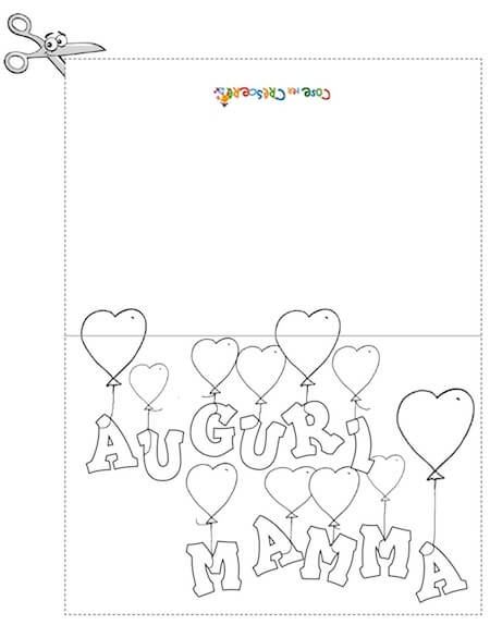 Un biglietto con una bella scritta Auguri mamma da colorare. Un biglietto di auguri che i bambini della scuola primaria e della scuola dell’infanzia possono stampare gratuitamente e regalare alla mamma per la Festa della mamma o per il suo compleanno. Dopo avere stampato il biglietto, il bambino potrà colorare il disegno e scrivere una dedica, un pensiero, una frase per la Festa della mamma all’interno del biglietto di auguri.