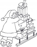 Babbo Natale con la slitta da colorare Un disegno di Babbo Natale che sta riempiendo la sua bella slitta di regali prima di partire per il suo lunghissimo e bellissimo viaggio in tutto il mondo. Cliccare sul disegno per stamparlo: