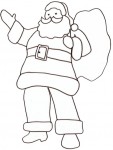Disegno di Babbo Natale con il suo grande sacco stracolmo di regali da portare ai bambini di tutto il mondo, che saluta i suoi amici elfi prima di salire sulla slitta.