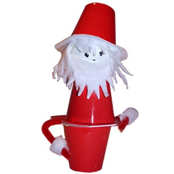 - Ritagliare due pezzettini di cotone e incollarli intorno alle estremità dei pezzi di scovolino per fare le maniche del vestito di Babbo Natale.