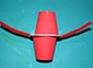 - Tagliare due pezzetti di scovolino per pipa rossi e incollarli sul bordo di uno dei vasetti, uno di fronte all’altro.