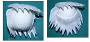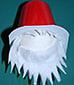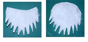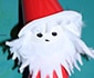 - Nel cotone, ritagliare una barba e i capelli di Babbo Natale. Ritagliare tutti i pezzi necessari per riuscire a ricoprire tutta la palla di cotone che sarà la testa.