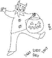 Bambino mascherato per Halloween da colorare Questo bambino, mascherato per Halloween, ha già raccolto parecchie caramelle! Un disegno da stampare e colorare gratuitamente. Cliccare sul disegno per stamparlo: