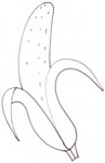 Disegno di una banana da stampare e colorare. Frutto del banano, un albero tipico dei paesi tropicali, la banana ha una polpa dolce e carnosa. Le banane crescono in grappoli, chiamati caschi che possono essere costituiti anche da 200 frutti!