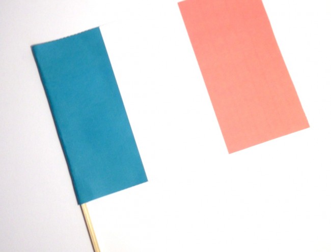 • Appoggiare l’asticella e ripiegare il bordo della bandiera per incollarlo.