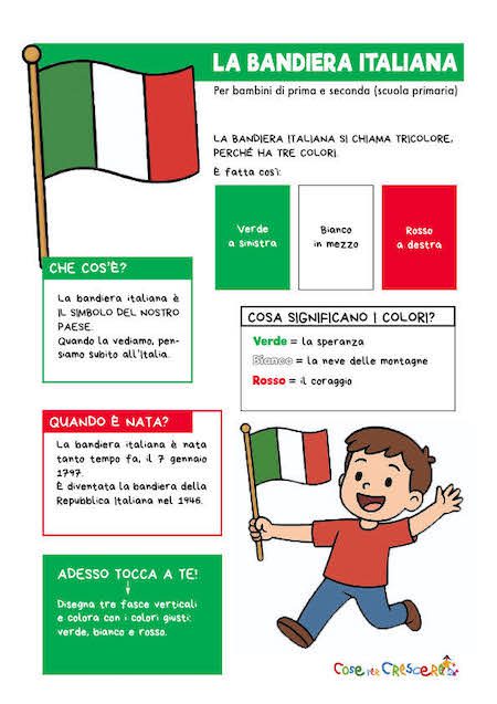 La nostra scheda didattica bandiera italiana per la prima e seconda elementare è colorata, accessibile e adatta anche ai più piccoli. Contiene: