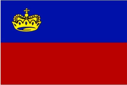 I colori blu e rosso della bandiera del Liechtenstein hanno un’origine incerta. Alcune fonti li danno come risalenti all’incoronazione nel 1746 di Giuseppe II d’Asburgo-Lorena a imperatore del Sacro Romano Impero, ove i dignitari reali indossavano livree blu e rosse nonostante i colori della casata regnante sul Principato fossero il rosso e il giallo. Lo stemma, caricato al centro dal 1982 per identificare la bandiera di Stato, è formato principalmente dalle armi giallo-rosse dei Liechtenstein in centro, sopra a uno scudo di forma sannitica contenente gli stemmi di Slesia (aquila), Kuenringe (giallo-nero con traversa verde), Troppavia (rosso e bianco), Frisia orientale per Rietberg (aquila con fattezze femminili), e Jägerndorf (corno di caccia), riferiti alle parentele sviluppatesi nei secoli e ai territori posseduti dai regnanti.