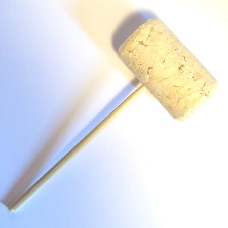 - Con l’aiuto di un adulto, inserire circa metà del primo stuzzicadenti nel primo tappo di sughero. Inserire la seconda metà dello stuzzicadenti nel secondo tappo di sughero in modo da attaccarlo al primo. Procedere allo stesso modo dalla parte opposta con il secondo stuzzicadenti e il terzo tappo di sughero.