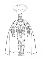 In questa disegno, Bruce Wayne è diventato Batman e indossa la maschera. Sopra di lui, il suo stemma con un pipistrello!