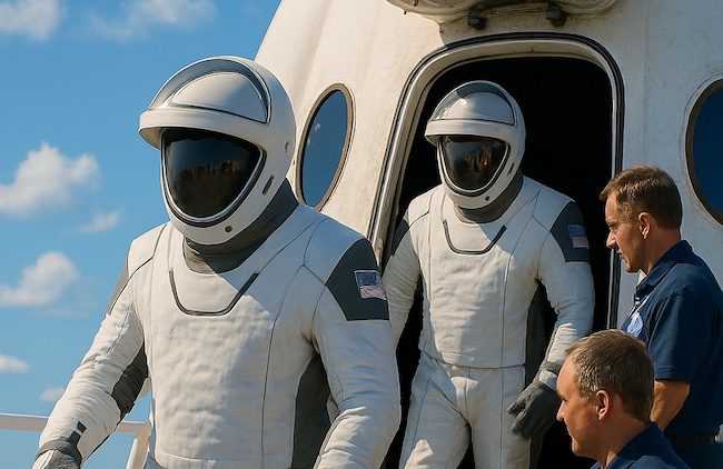 I due astronauti della NASA (Agenzia spaziale americana) bloccati nello spazio cioè sulla Stazione Spaziale Internazionale (ISS) per nove mesi sono rientrati sulla Terra a bordo della navicella spaziale Dragon di SpaceX, insieme ad altri due colleghi dell’ISS.