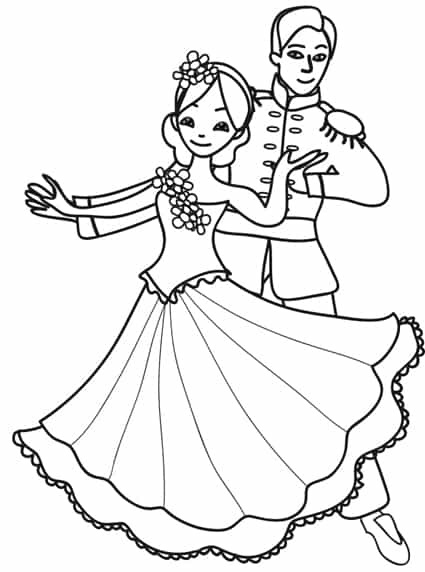 Biancaneve balla con il suo principe Disegno di Biancaneve, la bellissima principessa perseguitata da una cattivissima matrigna, che balla con il suo bel principe dopo le loro nozze al castello del re. Cliccare sul disegno per stamparlo: