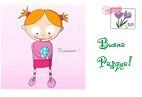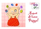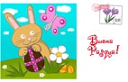 Su questo biglietto, il coniglietto stringe il suo uovo di Pasqua mentre parla con una farfalla.
