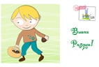Un bambino, con il suo cestino, alla ricerca delle uova di Pasqua.
