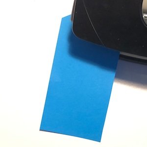 - Ritagliare un rettangolo di circa 5 cm x 10 cm nel cartoncino colorato.