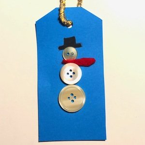 - Incollare i 3 bottoni in modo da creare un pupazzetto di neve.