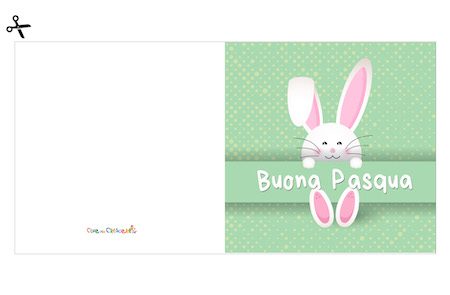 Un dolcissimo Biglietto auguri di Pasqua da stampare, ritagliare, dedicare e regalare o inviare ad una persona cara. Un biglietto di Pasqua da stampare subito e gratuitamente e adatto ai bambini. Un tenero coniglietto porta un cartello tra le zampine con la scritta Buona Pasqua. Il mio consiglio è di stampare il biglietto di Auguri di Pasqua su un foglio di cartoncino bianco (del tipo da disegno) in modo da renderlo più resistente ma andrà benissimo anche un semplice foglio da stampante.