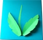 - Disegnare e ritagliare due foglie nella carta verde. Piegarle in due, nel senso della lunghezza.