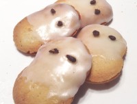 - Attaccate due gocce di cioccolato per fare gli occhi.