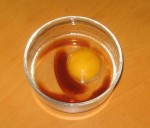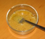 • In una piccola ciotola, mischiare con una forchetta l’uovo e lo sciroppo d’acero (o il miele liquido).