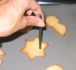 • Dopo 2 mn, con un bastoncino, fare un piccolo buco in quelli destinati ad essere appesi all’albero di Natale.