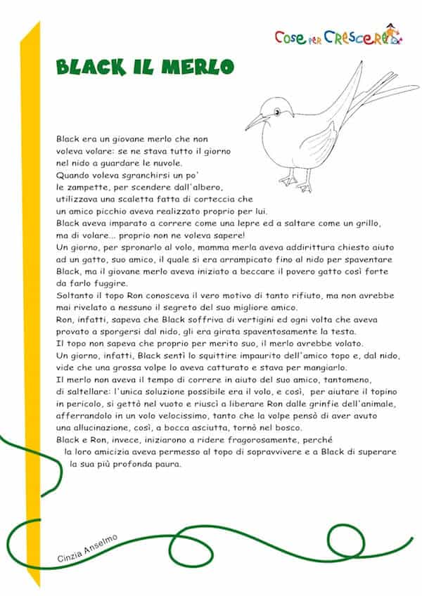 La storia di un merlo di nome Black, un merlo che non voleva proprio saperne di volare… Una storia per bambini, scritta da Cinzia Anselmo.