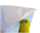 Piegare il rettangolo di carta velina à metà ed incollare il semicerchio di pizzo bianco sulla piegatura, come nell’immagine.