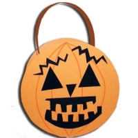 - Ritagliare una fascia di cartoncino arancione di 2 cm di larghezza per 25 o 30 cm di lunghezza. Incollarla o pinzarla da ambedue i lati della borsa.